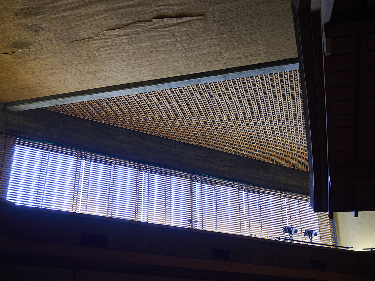 梅若能楽学院会館・能楽堂を設計したのは、著名な建築家の大江宏氏。大江氏は、日本の伝統様式と西洋のモダニズム建築との「混在併存」の第一人者として知られる。能舞台や茶室の設計にも実績があり、格式と機能美を兼ね備えた本会館の建築は、まさに彼の代表作のひとつである。